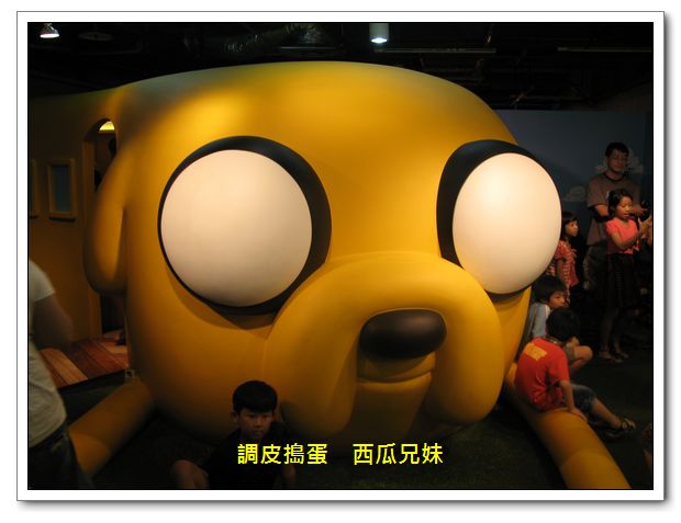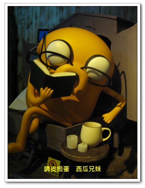 拉起紅線,讓大家排好隊 一進入門口,就有一隻巨大的老皮在迎接我們, 迫不及待的進入參觀囉! 阿寶,你的吐司看起來真好吃呀~ 老皮,忙著做早點 老皮,悠閒的看書、喝咖啡 好可愛的睡袋,好像一顆花生喔... 看到他們倆,心情都好起來了