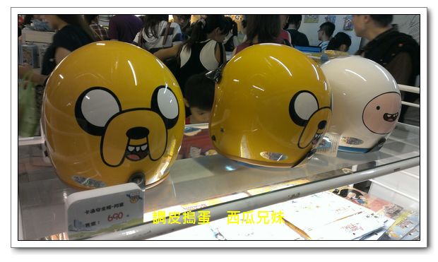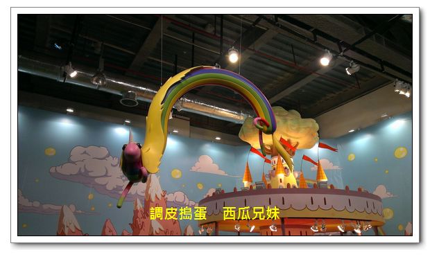 彩虹姐姐天上飛 起笑的阿寶老皮 可愛的泡泡糖公主 不免俗的,展場結束後的賣店 哈哈..還賣安全帽喔! 很可愛的抱枕 |