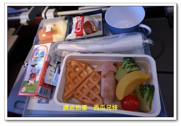 ![]() 起飛後沒多久,空姐開始送餐啦!