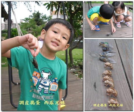 每到夏天,西瓜汯都會撿蟬殼來玩,還會把牠們排排站...