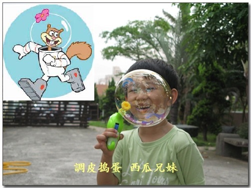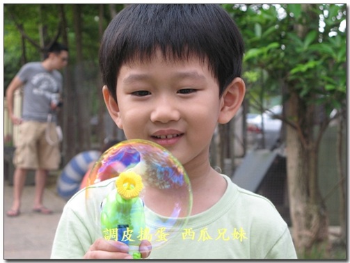 幼稚園生活已經一個月,從一開始的大哭大鬧,到現在的乖乖就範...喔...不是啦,是自動自發,算是進步很多很多了,我的心裏也覺得鬆了一口氣~ 之前為了西瓜汯不願意上學,煩惱了好久...跟朋友、同事聊了很多,發現大家適應期都不太一樣,少至2個星期,多至1個學期...然後每個小朋友花樣百出,什麼招都可以使出來,有的甚至要量過耳溫知道自己沒發燒,沒戲唱了,才甘願去上學... 西瓜汯咧...也是花招很多喔~ 好不容易熬到現在,終於好多了,至少每天早上起來不哭了,也肯笑笑地去上學了。哈哈...我的好日子,終於來臨啦! ----------------------------------------------------------------- 吹泡泡是西瓜汯喜歡的玩具之一,