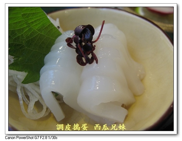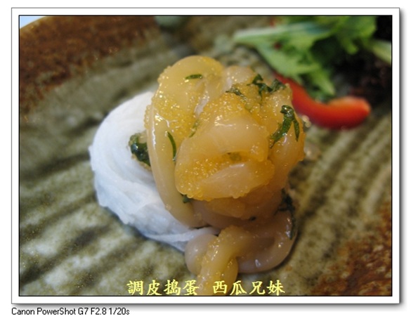 開始進入我們的套餐-精選梅花御膳(九品餐-680元), ----------------------------------------------------------------- (1)沙拉(四選一) 【海老卵拌透抽沙拉】 一口將那一小口透抽吃進嘴裏,口感超豐富的,