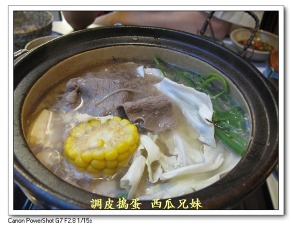 (7)主菜(鍋、蒸魚、烤物、燒物九選一) 【牛肉涮涮鍋】 哇~好喜歡這種日式陶鍋喔...(ㄝ~我是指鍋子本身喔!)