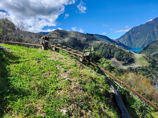 早上6點15分,我準備出發了。走到室外,天光初亮,在山林之間煙雲繚繞, 梨山確實是一個很美的地方。梨山週遭的果園很多,種植果樹的山坡地面積非常廣,從8號公路上下張望,不管往東看或是往西看去,大多山坡地都種滿了果樹,看起來非常的壯觀。果農們的生活簡單而規律,清晨時分就看到他們在山坡地上穿梭,不仔細看很難找到他們的身影。我在果園旁最常看到的是拖拉板車還有牽引機,另外還有類似單軌的載貨軌道小車,有些是電動的,有些是燒柴油的,它們利用齒輪帶動把車子(上面載貨,有時還載人)運送到山上,即使是非常的陡峭地形,有時甚至超過50度以上的坡度,單軌的齒輪車還是有辦法把人跟工具運上山,令人咋舌。 雖然看起來簡單粗糙, 但卻是相常實用的動力工具,唯一必須考量的是它的危險性,還好它的速度不快。由於山上人力流失嚴重,並且顧及這些辛苦的果農在那麼廣闊的山坡地上工作,擁有這樣方便的單軌貨車運送物資,可以為他們節省極大的勞力與時間。