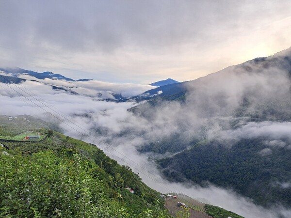 今天行程中的前10公里,我以輕鬆的腳步往上爬坡,因為周遭都是果園,而且在清晨的山谷中雲霧環繞,尤其是峽谷中的溪水急湍,非常壯觀。接下來的路程就顯得格外吃力,因為太陽慢慢出來發威了。除了全身汗流不止外,步伐也漸漸變得緩慢,這一段路上還有許多落石,施工的路段非常多。臺灣位處地震帶,再加上颱風季延長,所以中橫公路上四處坍方與落石的情況十分普遍,沿路上我就看到有好多處,令人不由地心生警覺。
