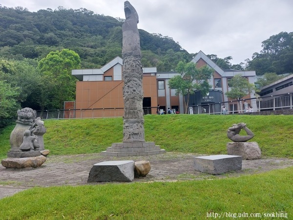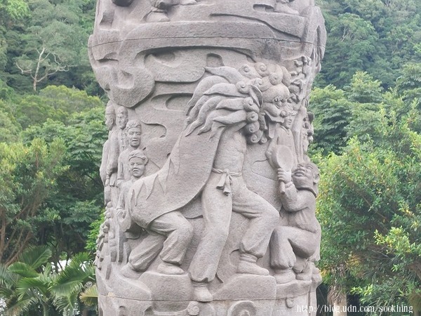 王秀杞石雕:龍的傳人 為了緬懷過去觀音山的採石歲月,遊客中心旁規劃了一座石雕公園,矗立著整塊觀音石雕巨型創作,石雕家王秀杞的[龍的傳人],蘊含觀光與藝術的結合,是觀音山的重要精神地標。