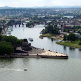 週日我們三個去萊茵支流Lahn河邊的Bad Ems 小小的地方 以前王公貴族來這泡溫泉 跟威廉大帝 俾斯麥 普法戰爭有點關係 今年也有去騎警用摩托車照相 只是我警帽戴歪了 晃了兩小時 我們就去Koblenz 科布倫茲 每次來Koblenz都是來轉車 從來沒有進城去看過 今天終於可以來看看傳說中的德意志角(Deutsches Eck) 萊茵河和摩澤爾河匯流處 先去萊茵河對面的堡壘 (Festung Ehrenbreitstein) 剛好四點以前還有當時武器槍枝的解說導覽 我們就先看校長兼工友耍刀槍 博物館有Haribo (某牌小熊軟糖)展覽 展到十一月 開到五點 所以我們沒買門票進去 只在外面玩砂畫明信片 和 做小熊徽章 最後去眺望 萊茵河和摩澤爾河交會的德意志角 心滿意足的搭車下山 想去找傳說中的萊茵爸爸和摩澤爾媽媽的雕像 (Vater Rhein und Mutter Mosel) 之前info小姐叫我們不要去 果然是有道理的 因為實在是太小了 還雜草叢生 跟海報上的差非常多 於是我們到老城去找那個市政廳旁邊吐口水的噴泉 (Schängel) 也實在是很小 吐一下就停了 我們就在那邊等他吐三次 把老城逛了一圈 最後去德意志角(Deutsches Eck) 威廉大帝的雕像 可以爬上去 不用錢 下來以後 我們坐在德意志角休息 寫明信片 發現怎麼大家都一直抬頭看雕像上面 喔喔 原來有對在上面演起免費的愛情動作片 真是勁爆 底下有這麼多人在看在拍 他們還是越演越火熱 一路睡回來 快到才來查票 不然一整天都沒被查票 票都沒蓋到印 回來才想到 明信片忘了寄 那下次去Koblenz轉車再去寄 |