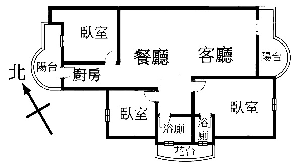格局: 3房 2廳 2衛 2陽台 1廚房