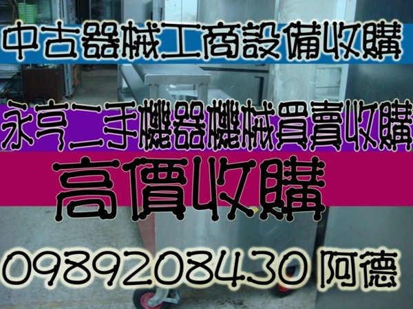 工商業廠機器械0989208430阿德永亨頂讓二手中古買賣估價餐飲設備切肉封口機咖啡機快速爐展示冰箱鍋爐水塔馬達發電機拆除收購冷氣冰箱餐廳餐飲生財設備廚房咖啡機鍋爐水塔飲水機馬達冰水發電機煎台烘培烤箱油炸攪麵麵絞肉機廚具生財工器具設備