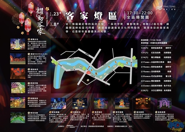 2026屏東燈節「客家燈區」的驚喜感是一層接著一層!不僅帶入了很濃厚的客家元素之外,又有現代感,每一件燈飾作品都能引起共鳴和討論,從這條蘊藏記憶的溪流「龍頸溪」出發,「溪流孕育、耀動客家」串聯12座花燈,如星河般閃耀,也透過燈節讓客家文化閃閃發亮,展現多彩的客家美學,也是今年新年喜慶最美的光景。 【2026屏東燈節|內埔客家燈區】