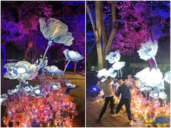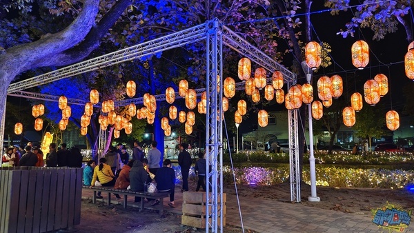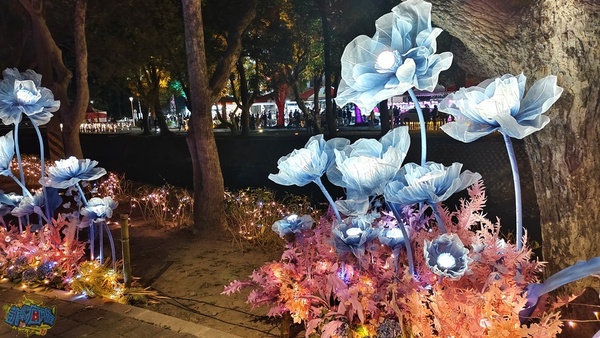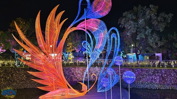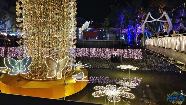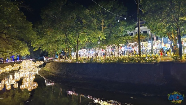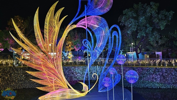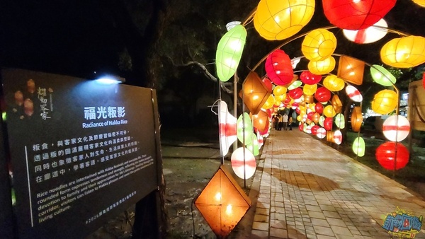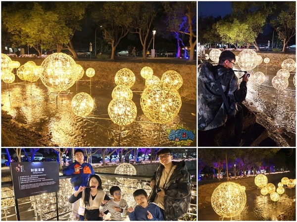每個小燈區都有設置說明看板,讓遊客了解燈飾作品背後的設計理念。 我個人很喜歡「財源滾滾」燈飾,超級美麗的藤球裝飾在龍頸溪畔的中央位置,此設計為傳承勤勞與智慧,將藤球化為象徵財富的金幣,也寓意著辛勤付出都將滾動出豐收的成果、無限的財富與希望。