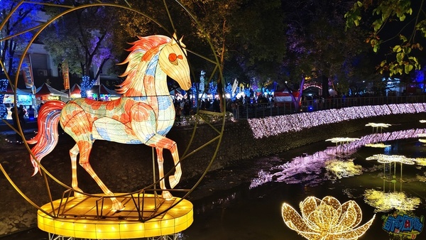 既然來到馬年,有個以「奔馳的馬」為核心設計出來的燈飾,相當應景! 此座燈飾名為「花馳夜合」,象徵勇氣、開拓與前行,表達客家族群穿越時光與水脈,將歷史與現代串聯。