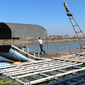 導覽老師表示,七股地區養蚵 (牡蠣),依照不同的海水深度,搭不同方式的蚵架,有竹筏式 (浮棚仔,照片)、垂下式 (站棚仔) 與平掛式 (倒棚仔) 等。