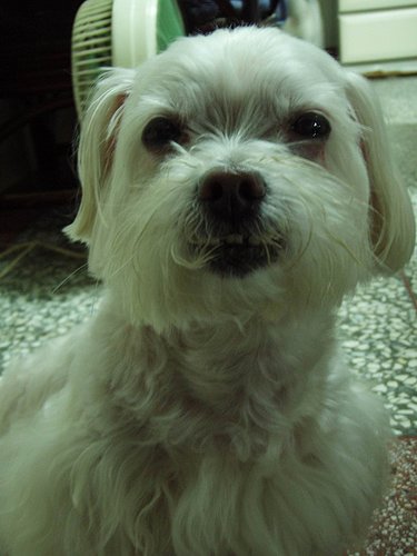 貝多芬,是鼎鼎大名寫命運交響曲的音樂家嗎?不,是一隻瑪爾濟斯狗的名字,為什麼名字取為貝多芬呢?有部電影叫做「我家也有貝多芬」,覺得「貝多芬」這個名字不錯,只是電影裡的是體型碩壯聖伯納犬,而家裡養的是嬌小的瑪爾濟斯小狗。而瑪爾濟斯「貝多芬」,還有個小名,我們就叫牠「貝貝」。 貝貝是處女座的小狗,現在已滿十三歲,是一隻很可愛的狗狗,愛玩又愛睡覺。原本是養在台北與ㄚ今作伴,但是有一年春節搭朋友的順風車而將牠帶回南部,而回程時又找不到便車可載貝貝回台北,只得暫時託爸媽養,況且那時家裡也有二隻狗狗,所以就留在南部了。 一個月、二個月、半年過去了,爸媽已不讓ㄚ今帶回台北了,爸媽覺得養在公寓裡的小狗太可憐了,簡直虐待小動物,況且家裡有另外兩隻狗兒作伴,貝貝就不會寂寞了,哈!也不會得憂鬱症。也不記得貝貝在台北待了多久,而在南部家又住了多少日子,總之,當ㄚ今回南部時,貝貝依然熱情、黏人,不太理會媽咪,所以媽咪常開玩笑的說:「忘恩負義的小狗!」嘻!不是啦,牠只是想念ㄚ今罷了。 上月中旬跟妹妹回南部度假時,有件事真讓我們笑掉大牙。 吃晚餐時間到了,二隻狗狗那時都在一樓玩耍,爸爸從一樓上二樓準備吃飯,獵犬「點點」亦跟著爸爸上樓,但就是沒看到貝貝。 問了爸爸:「貝貝呢?」 爸爸說:「叫牠上來,牠又不上來。」 貝貝是隻不甘寂寞的小狗,怎麼會不上樓來呢? 「為什麼?」 「平常下午五、六點時,會帶牠出去蹓蹓。今天只帶牠在附近逛了一下子就回來了,可能覺得蹓得不夠、不過癮吧!」 ㄚ今下樓一探究竟,但一到樓下,真是笑昏了ㄚ今。貝貝端坐在一樓的門口,瞪著大大的眼睛看著ㄚ今,任憑ㄚ今呼喚,屁股好像釘在地上,不動就是不動,而看到的貝貝的眼神,不是苦苦哀求,沒有笑容,好像無奈又有點生氣,似乎在告爸爸的狀「他今天只是敷衍我,只帶我出去蹓了一下子就回來了。」 ㄚ今不忍,也心軟了,當下抱起了貝貝,到對面的鞋店逛了逛,也在附近走了走。但牠的頭一直往前探,彷彿告訴ㄚ今得往那個方向走才對。但是時間已接近七點,蹓了約一刻鐘,回家來了。一進家門,ㄚ今想試探看看貝貝是不是會自動上二樓,在門口放下了抱在懷中的貝貝,逕自走向樓梯。 猜猜看,貝貝的反應如何? 牠依然一屁股坐在門口,望望門外,再望望ㄚ今。但ㄚ今這回吃了秤錘、鐵了心腸,不再理會貝貝不甘願的表情,不過還是忍不住呼喚了貝貝。「貝貝」一聲,不動;「貝貝」兩聲,仍不動;「貝貝」第三聲,牠抬起了千斤重的屁股,挪著沈重的步行,很慢很慢的走向樓梯。真是心不甘,情不願啊! 晚餐時刻,ㄚ今向全家報告貝貝的舉動,全家人真是笑翻了。媽咪還說:「爸爸以後不可敷衍了事哦!不要以為小狗是可以欺騙的,牠可精明的很呢!」