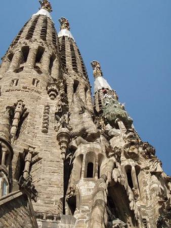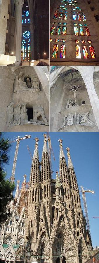 2008西葡摩17日遊(04)巴塞隆納─天堂與地獄的聖家族教堂~~ 前一天坐了二十幾個小時的飛機,上床睡覺時已凌晨一點多了,因此早上七點的morning call一響時,著實嚇了一跳,賴了一會兒床,才心不甘情不願的起床。 打開了電視,拿著遙控器,尋找著說英文的頻道,因為西班牙文聽不懂,而英文至少還懂得六、七成,轉到了「SKY NEWS」的新聞頻道,是英國的新聞頻道,正在播報世界新聞。有意無意的看著它,聽著它,隱隱約約電視裡傳來了很熟悉的語言,不是我們說的國語,而是有兒話韻的北京話,是中國的新聞吔,更是插播新聞,應該是很大的新聞吧!再仔細一瞧,原來是大地震,那麼是哪裡發生高達7.9級的大地震呢?看著英文字母去拼地名實在不是一件容易的事,配合著螢幕上的地圖,再把那英文地名念出聲,哦!原來是在四川成都附近。哇!將近8級吔,死傷恐無數囉!當幾年前,中國建了長江三峽的大水霸後,總覺得如此的破壞大自然,總有一天大地會反撲的,也許這就是大地所作最嚴重的抗議吧! 這次旅遊的第一個參觀景點是巴塞隆納的聖家族教堂。早上九點多,太陽公公已露出了很大的笑容,來到了目的地,遊覽車繞了教堂一圈才放我們下車,拿出了相機,正準備卡嚓一聲拍照時,領隊吆喝大家,不要急著拍照,他要帶我們到教堂對街一個小公園裡的某一特定地點,說是那裡才是拍教堂最佳的地點。 抬頭看了一下,拿著照相機對著教堂取景,唉!總覺得找不到一個最漂亮的景,為什麼呢?教堂如玉米的尖塔上,處處有鐵架,總是無法把那些礙眼的鐵架從影像中剔除,不過還是卡嚓卡嚓的拍了幾張相片。 也許你會問如此有名的一間教堂外觀怎會有鐵架呢?難道是在整修嗎?其實不僅外面架滿了鐵架,教堂裡面有許多地方還在敲敲打打,所以囉,不是在整修,而是還沒蓋好啦。這間從1882年開始建造的偉大建築物至今仍未完成,預計還要再蓋個二、三十年。 聖家族教堂的前門,稱之為天堂,而後門則謂之地獄,原本也不懂為什麼有天堂與地獄之分,直到走到後門,仔細看了那裡的雕塑才恍然大悟。其實這棟建築物,光是外觀上的雕刻,就夠讓人眼花撩亂,甚至嘆為觀止。前門的雕塑風格,花俏美麗,讓看的人感受到一片歡愉、平安、快樂的氣氛;而後門的雕塑,線條簡單流暢,訴說的是民間疾苦,看了之後,直想:生活真的有那麼苦嗎?難怪會有天堂與地獄的區別。 聖家族教堂是建築師安東尼.高第的獨具匠心之作。說它是哥德式建築,其實不然,應該是歌德式改良式的結構,算是現代主義的建築物吧!傳統的歌德式建築有尖塔、薄壁、彩繪玻璃、飛扶拱,在聖家族教堂裡好像都具備,但是歌德式建築是利用扶壁及飛扶拱支撐建築物的重量,而高第用的是樹枝狀柱分散了教堂的重量。而那玉米狀的尖塔亦不能歸類歌德式的,當我們參觀到地下室的一個覽索帶動拱模型時,即明白了那尖塔是由覽索帶動拱造出來的拱形尖塔。所以囉,也許可稱之為改良式的歌德式建築,是一更現代摩登的建築物。 一進入教堂時,極為詫異的是裡面竟然還在大興土木,工程單位利用圍幕把中間圍了起來,只剩周圍一個小小的通道可以走動,所以裡面擠滿了參觀的人。似乎看不到教堂應有的禮拜堂,只是有挑高的天花板,天花板上有樸素但美麗的雕塑,而壯觀的圓柱當然是有的囉!彩繪玻璃並沒有想像中的絢麗,但卻更顯簡單大方。 博物館位於教堂的地下室,裡面的展示品有告解室、雕塑品、繪畫等,最主要的是展示了這座教堂的模型、平面位置圖及其建造工法,還有一間工作室,把聖家族教堂介紹得非常透徹,更讓人不禁對高第這位偉大的建築師肅然起敬,其實最期待的是希望在有生之年能看到它完成後的模樣。