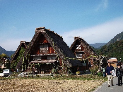 昨晚睡得不好,不是認床,而是鼻子過敏,一直打噴嚏,可能是因為天冷或空氣太乾燥,或者是還沒適應日本的環境,因此吃了一顆抗過敏的藥,雖然噴嚏不打了,但仍輾轉至三點左右才睡著。因連續二天的睡眠不足,一早醒來,腦袋卻因為被「空」填滿了,似乎裝不下任何東西。 用完自助式早餐後,驅車前往「上高地」。但腦袋空空的ㄚ今,一上車就昏昏沈沈的去看周公了,覺得導遊的聲音好縹緲、好悠遠,更覺得好吵,她說了些什麼故事,交待了些多少事項,完全進不到充斥著「空」的腦袋裡。不管她了,養精蓄銳比較重要了,得為下個景點補足精力吧! 與周公約了一個半小時的會後,終於到了上高地,天氣就如同其名一樣,「高」得有點冷,可能只有十度左右吧!不過,太陽公公倒是挺賞臉的,露出了大大的笑臉,驅走了不少寒意。 導遊領我們走過了短短的森林小徑,直抵河童橋。橋下溪流的水清徹無比,而更令人驚異的是,竟看到幾隻綠頭鴨悠遊其中。 遠處山形優美,但令人遺憾的是,該在深秋的此時火紅的樹葉,紅得不夠火、不夠熱,其中或綠或黃,不過心念一轉後,卻覺得如此的景致反而更加的豐富、燦爛,再加上太陽公公親切的照射後,光影的變化,樹葉色彩的拂動,倒像是許許多多穿著各種顏色的精靈在林間跳躍嬉戲。有個團友問:「是現在的風景漂亮呢?還是雪景美麗?」如果山頭白雪靄靄,再加上今天的景致及宜人的天氣,那才是人間仙境吧! 中午的餐點是日式定食套餐,再加上有名的飛驒牛肉。但很可惜的是ㄚ今不吃牛肉,無法告訴大家那牛肉的美味程度,不過據同桌的團友說:入口即化。而ㄚ今所吃的豬肉,也佷優質,不澀不油,好吃! 接下來又拉了二個多小時的車,到達白川鄉合掌村。由於看過陳銘磻老師所著的《雪落無聲》,對於合掌村印象特別深刻,因此對此地格外憧憬,更是異常的興奮。 從停車場到合掌村,得走過一座長長的吊橋。據來過的團友表示,以前來合掌村時,遊覽車並不是停在現在的停車場,是直接進到村子裡,所以他們並不知這座吊橋。這項措施應該是為了維護合掌村裡的環境與旅遊品質,才把許多遊客的車子攔在村外的吧。 走過了這座吊橋後,夢幻中的茅草屋已映入眼簾,但導遊說要先帶大家去參觀明善寺後,再讓我們自行去享受這被列為世界遺產的合掌村傳統建築群。 脫了鞋,進入了明善寺,爬上了又窄又陡的木製樓梯,看到了以前傳統的農耕器具、養蠶的用具和生活用具……等,對觀光客而言最特別的是二、三樓前、後大窗戶,為什麼呢?因為站在大窗戶前,可把整個合掌村的風景一覽無遺,更是拍照的好景點,而且在二樓的大窗戶前,還有服務人員幫忙拍照,說是替你掌鏡,其實他們的目的並不在此,而是什麼呢? 拿出可愛的斗笠讓觀光客戴上,坐在窗前,再告訴你這是免費的後,再拿出看似專業的單眼相機,咔嚓一聲,你的身影就被留下來了,只是如果想要被拍的照片,得花錢買囉!哈!因為無所謂,竟也把自己的身影留在她的記憶卡裡,更因為不在意,亦沒花錢買下照片,當然不知多少錢囉!不過,ㄚ今怎會錯過從窗戶裡所補捉的美景,只是照片裡少了人的陪伴罷了。 終於走完了明善寺,可以漫步在這夢寐以求的村子了。 太陽公公的笑容燦爛,此處已沒有上高地冷冽,還覺得溫暖得有點過份,只得卸下毛外套,再買了一隻抹茶奶油霜淇淋,悠遊自在的往那一棟又一棟的合拿型的茅草屋前進。 在去合掌村以前,腦袋中的景象是整個村莊都是茅草屋,而觀光客則像是小精靈般的在茅草屋間興奮跳躍。但是,一進到村裡,小小的失望,讓人震撼欣喜的茅草屋是有的,只是散居於村莊各處,較多的是本地人居住的房子及商店,村莊小徑還常有小轎車出入,所有的思古幽情直讓這些現代的東西所破壞,唯有站在茅草屋下的那短暫時光裡,才得以進入了時光隧道裡。不過令人欣慰的是這些本地居民住的房子或商店的建築型式並不會太突兀,只是覺得不夠悠遠而已。 正當感嘆日本政府對於古蹟的用心時,正當拿起相機準備把那夢幻般的茅草屋的倩影留在記憶體裡時,竟看到了旁邊停了小轎車,真是煞風景。其實如果真要打造個如夢似幻的仙境國度,理應限制各種車輛的進入,商店的經營也要恰如其分;而柏油路也是破壞「古」感的設施,不過可以理解的是這是為了讓觀光客方便走路的設施,只是應該還有其他方式可以克服柏油路的現代感吧。 是的,對於合掌村有著小小的失望,也許在覆蓋著白雪的冬天來,才有浪漫夢幻的仙境感吧!因為所有破壞「古」意的東西,全消失在白雪裡了。 隨後前往日本三大名園的「兼六園」,抵達時已是四點多,天雖未全黑,但離太陽下山時間已無多,得快快欣賞此處有名的景觀美景。 一處園景設計成功的主要因素,除了整體規畫的順暢度、植栽的保養與安排外,最細細品味設計師的心,看每一塊石頭、每棵植物、每個細節的用心……都可體會得到他對這塊土地的愛。ㄚ今喜歡這裡的大氣,看那蒼翠碩壯、向天空無限伸展的大樹,看那石塊堆疊的禪意,看那鳥兒自在的飛翔,看那所有收邊的用心……實是日本景觀設計的典範。 但走著走著覺得怪怪的,哪裡不對勁了呢?想著想著,忽然恍然大悟,原來是每塊草地或綠地都被粗麻繩圈圍起來,而支撐這些麻繩的是每隔約二公尺豎起來的一根根的竹子,遠遠看起來就好像是圈地為王的感覺。。其實細看之下,會發現草地或綠地周邊地上