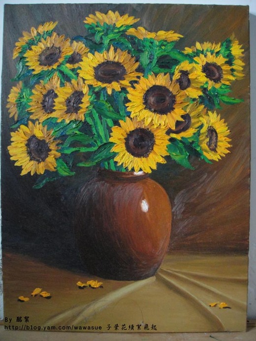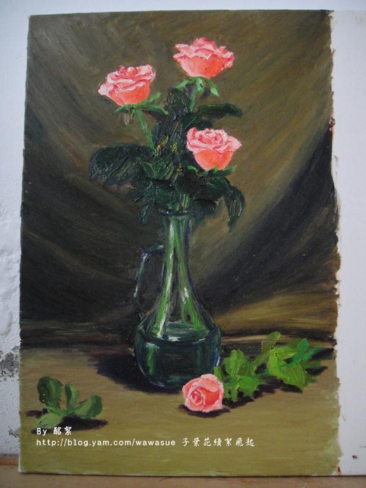 這幾幅油畫是在港區藝術館上課學的.在N年前.我還未有孩子去學的.從畫小幅畫到畫大幅畫.學了1年有吧!!在以前念美工對油畫只知皮毛.踏入社會多年後.在一個機緣下去學油畫.學油畫滿足了我還在校上課的感覺.