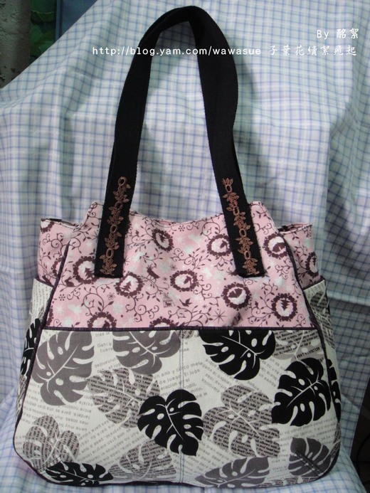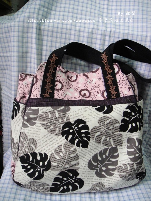 2011.07.04 我的黑夜手作包 在上個手作完成之後,都在忙做"芒果青",一直沒空動縫紉機。 手作包的正面,我選擇了黑色與紫色的配色,滾邊條為深一點的紫色。
