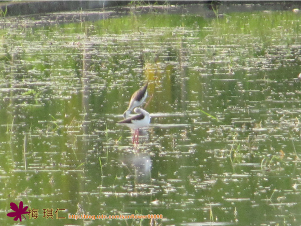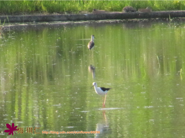 繼8/25在水田發現二隻高蹺鴴的第二天,又來了四、五隻,振奮人心呀!不免一想,會越來越多嗎?