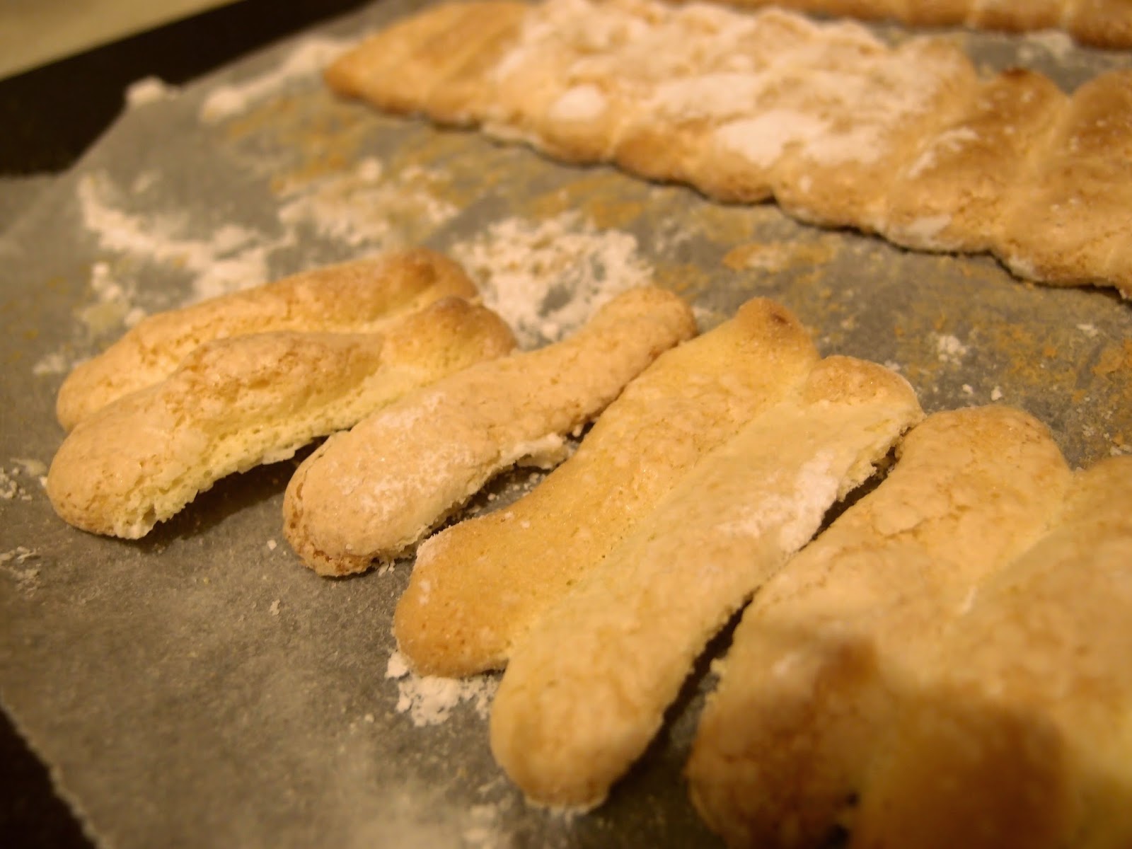 第二盤才成功,還好烤一盤只要十分鐘,而且麵糊有多,不用再打。不放心請用三顆蛋,90克砂糖,90克低筋麵粉做。 手指餅乾配咖啡極品啊,熱量又比一般餅乾低。多做一點不錯。