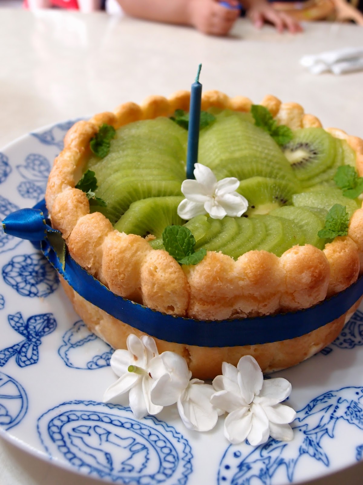 整體甜甜的,上頭放的水果就決定用奇異果(因為家裡有五顆,拿來練刀切切看,切壞也不用出門補買)