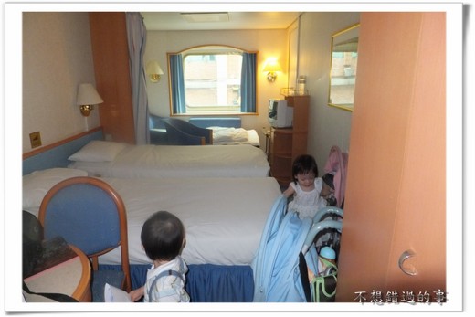2011 年 10 月 23 日,籌畫多時的親子出國遊終於實現。遊玩照片在這裡。 自蝦兔呱呱落地以來,我與小公主就不斷嘗試帶蝦兔到處玩。滿六個月後,從最早的幾個小時、半天、一整天乃至兩天一夜,這一路觀察下來,蝦兔跟他們的媽一樣,骨子裡就有適合出國玩的特質。 原本計畫去適合小朋友的新加坡,後來考量到蝦兔還不能完全受控制,又擔心五個小時多的航程,好動的蝦兔會坐不住。我與媽媽曾經在飛機上,飽受後座小朋友的哭鬧凌遲長達 3 小時,既然己所不欲,就決定勿施於人。經討論後決定坐麗星郵輪的寶瓶星號,到石垣、那霸來個四天三夜遊,起碼郵輪有自己的房間,小朋友即使哭鬧,帶回房間後還不至於影響他人。 行前也是一波三折,單單選房就折騰許久。因為船上四人房本來就少,加上我不夠積極,拖太晚才訂船,以致四人房只能用兩間三人房來處理,還好這次有揪團,得以將兔兔的名字借放到友人的房間。不管過程如何,我們全家四口的第一次海外之旅,終於順利成行了。 當日天氣晴朗,果然適合出遊。我與同行的二嬸與堂弟相約 11 點半在基隆港務局,一到現場,果然如三嫂行前提醒,那人龍與行李排得令人不敢相信,彷彿在排哪位天王巨星的演唱會般。另一位朋友則一派輕鬆, 12 點半才要從宜蘭出發,趕在最後一刻關閘前抵達。 出關後要登船的短暫路程上,有裝扮成卡通人物與街頭藝人的船員歡迎旅客,蝦蝦上船前就被一隻企鵝人偶嚇哭,呵呵。上船後先抵達五樓房間,放妥行李及簡單梳洗,便上九樓王朝餐廳吃下午茶,後到甲板上享受日光浴。蝦兔第一次看到海顯得特別興奮,回到房間兩兄妹索性將臉貼在窗前看海,一般喊者海一邊手舞足蹈,真不知他們到底是懂還是不懂。 排隊上船後還是一切靠排隊。我和堂弟先去排船長之宴,一看到人龍我們懶得再排就直接放棄。又去排完未來兩天的岸上行程,稍做休息後,便去找餐廳晚餐,每間餐廳也是大排長龍,最後找到九樓不用排隊的航海家吃晚餐。席間堂弟不敵海波浪,吃不到一半,已見他面露慘白說暈船了,但蝦兔彷彿覺得在坐搖搖椅,相當雀躍,不斷尖叫,食慾也奇佳,讓大人相形失色。 飯後回房在超小的淋浴間站著洗蝦兔,體驗戰鬥澡,然後讓他們臥倒休息。說也神奇,可能在輕輕搖晃的船上像搖搖床,蝦兔睡著後一覺到天亮,順利度過船上的第一夜。 第二天早上,船在陽光普照下泊入藍天裡的石垣港,由於一早就要去辦理入境手續,不到七點,我們一家四口,已經梳洗換裝完成,到航海家餐廳享用在船上的第一頓早餐。經過一夜舒服好眠,蝦兔的胃口看來不錯,看來他們不只適合國外旅遊,也懂得吃好吃的食物,不會一成不變只喝ㄋㄟ ㄋㄟ。 或許是因蝦兔坐在推車上,我們在辦理入境過程中備受禮遇。雖然要排隊,但一些不好排隊的地方(如樓梯間),服務員都導引去坐電梯,我們夫妻倆算沾蝦兔的光。親切的蝦兔沿途還開心地跟排隊的鄉親揮手,此般行為竟也博得眾人熱情的回應。 在船上辦理完入境手續後,大家魚貫下船步向遊覽車,開始今天的行程 。 首先抵達桃林寺,蝦兔第一次踏在小石子路,似乎感覺相當有趣,沒一會兩個小鬼已滿身大汗。在鐘乳石洞,蝦兔在濕熱的黑暗洞穴中,上下階梯爬爬走走超過半程,最後才找爸爸媽媽抱抱。媽媽為了獎勵,出洞後破例讓他們品嘗香濃的日本冰淇淋。 到了川平灣,蝦兔坐上底部透明的玻璃船一窺海底景緻,蝦蝦似乎比較專注於視線中魚魚草草,兔兔沒多久已與隔壁的小姊姊交起朋友。最後我們用超市的即食草草解決午餐,隨即登車返船。此時已是午後二點多,看來蝦兔真的累了,沒多久就睡著了,看著他們被烈日照得紅通通的臉頰,還真有些不捨。 晚上,我們決定到船頂甲板的澳珊娜露天燒烤吃 BBQ ,在涼風與音樂裡,蝦兔照樣吃得相當盡興,餐畢我們先去七樓服務中心領入境卡,蝦兔在 Lobby 大玩捉迷藏,不時發出嗤嗤的笑聲,此舉引來櫃枱服務員之關注,開始逗著蝦兔玩並送他們好幾張明信片。隨後我們便回房休息。在這艘充滿娛樂設施的遊輪上,我們家作息很正常,八點就睡覺。 第三天又是風和日麗,早餐在 十一樓香味軒吃的,蝦兔睡飽也吃飽,我們到甲板上散步時, 船兒緩緩駛入那霸港。今天不用通關,下船時遠遠看到一群小朋友在跳舞,原來是歡迎郵輪旅客來的。看到有人過去拍照,我們也想帶蝦兔湊過去,誰知日本小朋友不耐煩了,只和前面的人拍了兩下就一哄而散,留下蝦兔呆呆坐在推車上,哈哈,他們也有吃鱉的時候。 上遊覽車先到守禮門看看,進首里城前階梯較多,隨行的親友們來幫蝦兔抬轎,享有如太子與公主般之待遇。到了小山上的休息所,與兩位日本年輕小姐邂逅,蝦兔逗得她們笑呵呵直呼「卡哇伊」,就這樣輕鬆跨過語言障礙(目前他們是全球通,說哪國語言都沒關係),進行了國民外交。我們在公園邊的小店,買了四件「沖繩苦瓜 T 恤」,成為第一套全家親子服。 午餐跟著導遊在國際通的御菓子御殿樓上吃套餐,蝦兔再度展現驚人食量,幾乎將媽媽的餐點吃光光。值得一提的是,這家店的洗手間和尿布間真的很豪華,日本人此點還真是比較細心。吃飽去逛國際通,走著走著,兔兔不敵太陽和睡意,自顧自地在推車上睡著了,反而平常貪睡的蝦蝦還撐著。 接下來去新都心逛了一圈,在超市買些水果,這幾天蝦兔大魚大肉,讓他們換換口味。說也奇怪,我們登船後天氣開始轉陰,回船上要