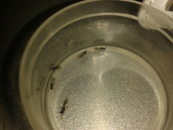 膜翅目 蟻科 針蟻亞科 粗針蟻屬 華夏粗針蟻Brachyponera chinensis[Asian needle ant] 蟻后約5mm 工蟻體長約5mm 雄蟻長約3mm 小型蟻。常見的小型粗針蟻。體色黑色。尾部帶有細小的螫針,用來攻擊獵物及工及外來敵人用的。處女蟻后在10至11月會婚飛,常常集體趨光飛入建築物等地方。蟻后與工蟻不易分辨,主要特徵是蟻后胸部較大,與頭寬差不多,且有翅痕。工蟻胸部較細小,無翅痕。