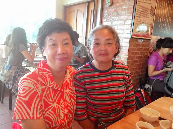 美宜在LINE上,確定要參加聚餐人數之後,大家好期待6/24這天見面,50年的同學未謀面,能歡聚一堂真不容易! 哇~劉賢義和李海虹從左營坐夜車,早上4點就到台北,他跟我約9.00在大安森林公園捷運站6號出口見,我8.30分就到,咦~左瞧又瞧沒有人,一會兒,聽到有人喊我名字,啊~是劉賢義 廣茜在LINE留言給我,沒有網路的我 看不見寫啥?原來她臨時有事,自行上貓空了,賢義和海虹坐捷運到大安森林公園做運動,6點早餐吃麥當勞,8點左右登上18樓張和倫家裡。 我剛踏進門,聽見海虹坐在沙發上說話,趕緊上前擁抱她。聊一陣子差不多時間,我們四人坐上TAXI,直奔木柵捷運站旁的信義十八大樓美宜家,在樓下大廳看見隋竹林同學,他不認識我,只好自我介紹囉!美宜來了,藺瑩牽著小外孫樂樂,海虹直問我,她是誰?呵呵虧妳年年在左營同學會,你們見過幾次面,怎麼一下忘記她是誰了! 同學們陸陸續續進美宜家聊天,客廳大螢幕上放著2015海子52海青55大團圓同學影片給大家欣賞,一首海軍軍歌勾起兒時的回憶,大夥朗朗上口,氣氛高昂真令人感動。 去貓空阿義師茶樓前,團體合照。潔蕙有事需先離席了,在樓下看見張校長,特地從新竹搭車趕來木柵與同學們會面&聚餐。