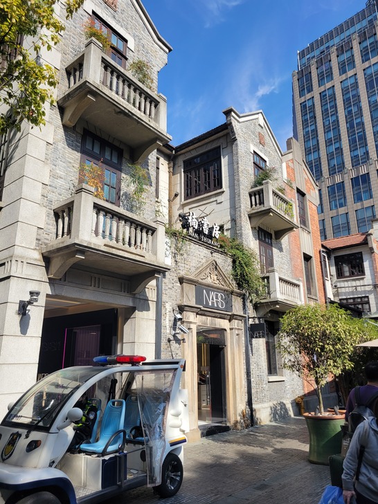 新天地北里是老石庫門建築改建的商場,南里則是現代化建築的購物中心。