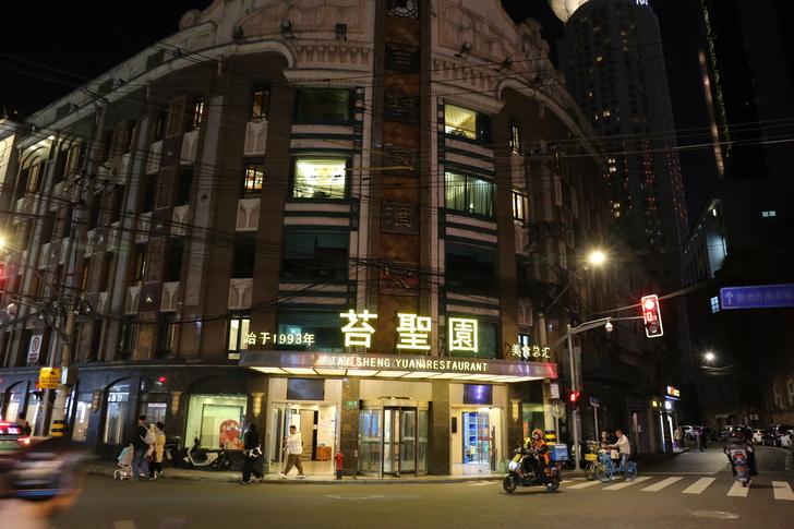 苔聖園酒家是黃河路上知名本幫菜餐廳,因其「繁花」劇中「至真園」相似,一躍成為上海知名的打卡景點。