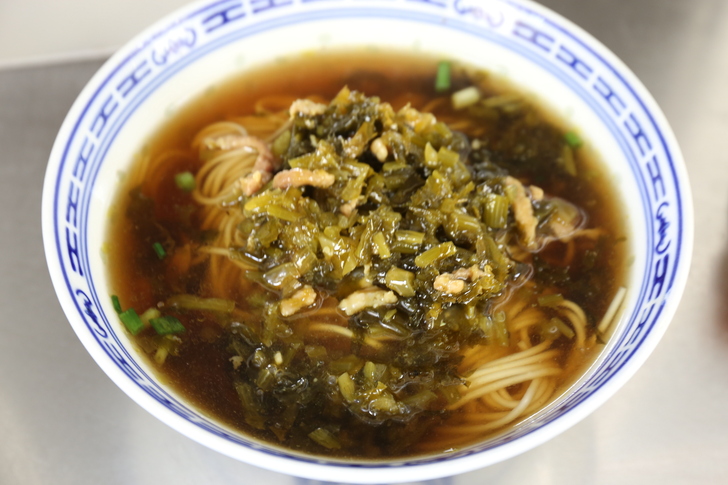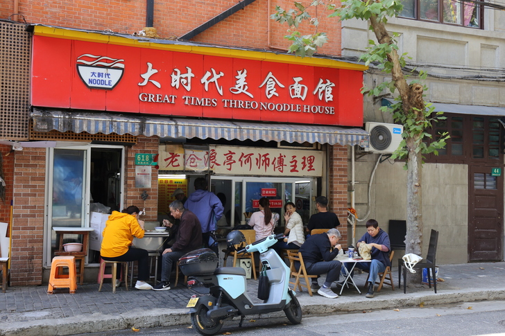 帶著一行人前往不遠的上海大時代美食麵館。這間曾經出現在「蝸居」中的老麵館由老滄浪亭何師傅主理,有著讓我難忘的好滋味。 點上一碗招牌的鱔絲腰花麵,佐一個荷包蛋,再來一塊外皮酥脆的炸豬排。