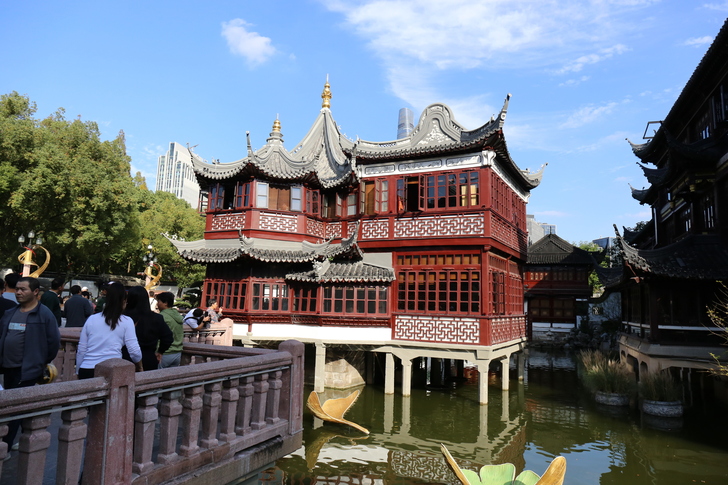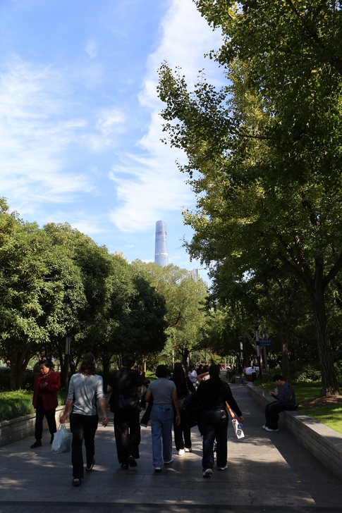 帶著一眾人走過商場和九曲橋,沒購票參觀豫園,我們回到大街上,直接打車前往上海中心大廈。
