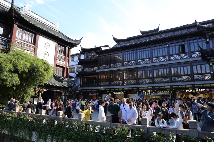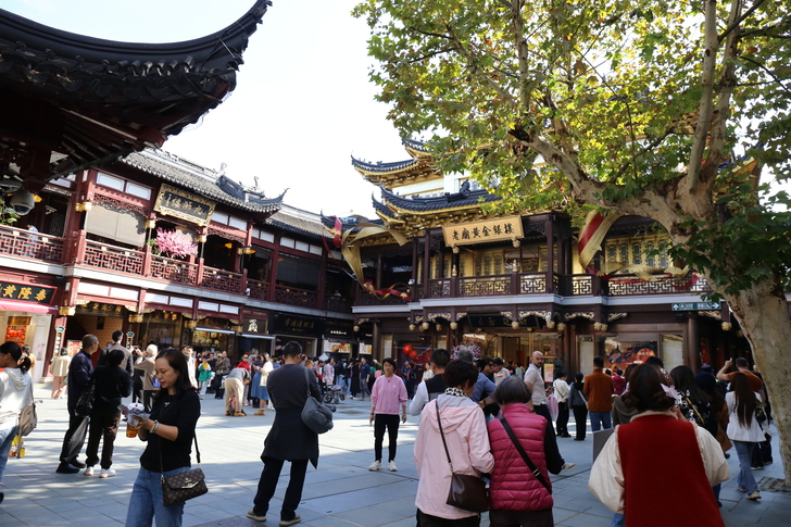豫園老街熱鬧非凡,商鋪林立,售賣著各種傳統手工藝品和特色小吃。