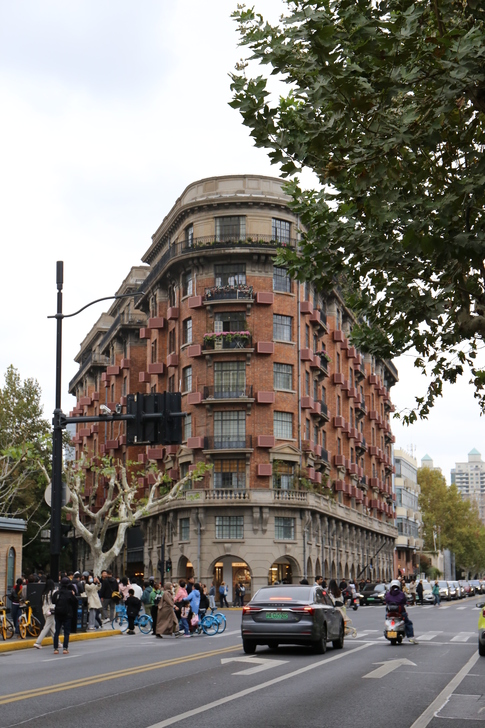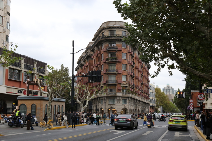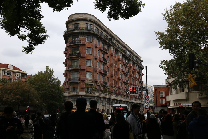 沿途欣賞著「法國梧桐」、「英國梧桐」和「倫敦梧桐」的歐式風情,費了一番腳程,從余慶路穿越擁擠的人潮終於來到武康大樓。
