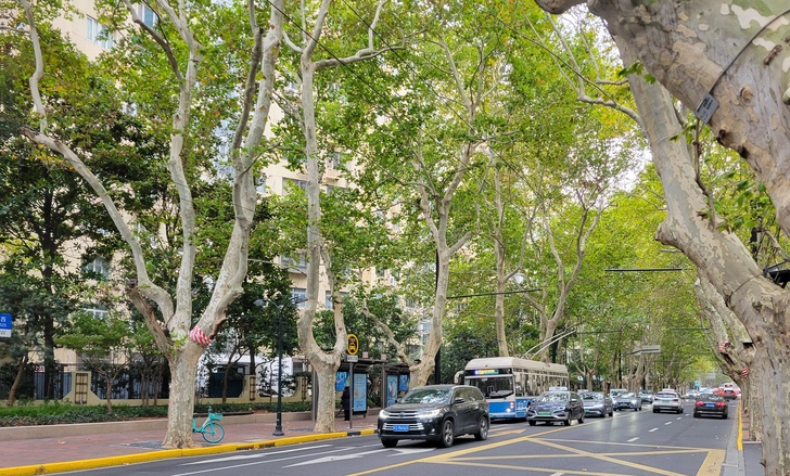 望著衡山路上的法國梧桐和無軌電車確有一番異國風情。衡山路也有「東方香榭麗舍大道」美譽。