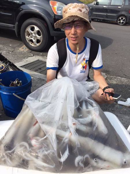 這次跟老朋友坐船出海釣透抽, 在旁邊打打雜.