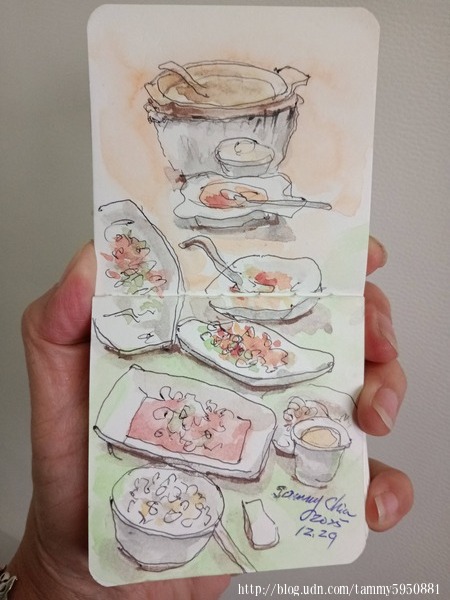 20251229和社團學畫的成員學生去聚餐… 帶來這本摸魚集小画本當場吃完後画的黑線搞