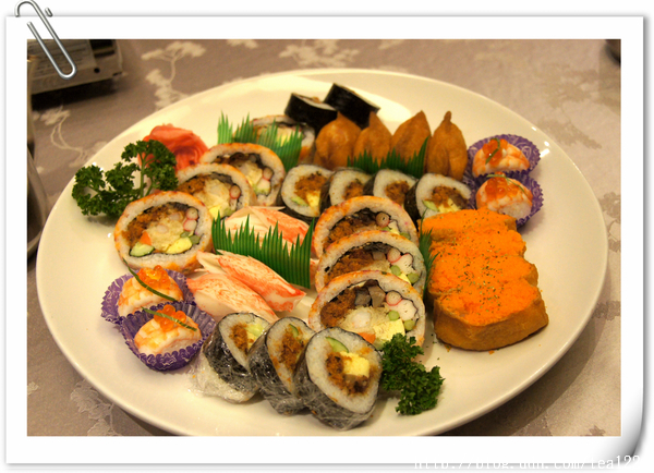 綜合壽司 青柳的壽司功夫不差,紮實的飯糰儼然分辨不出顆粒,嚼起來頗有彈性,新鮮的握壽司和美美的花壽司,以及滿到爆漿的明太子,這一大盤幾乎秒殺。好吃否,看倌自己想囉。