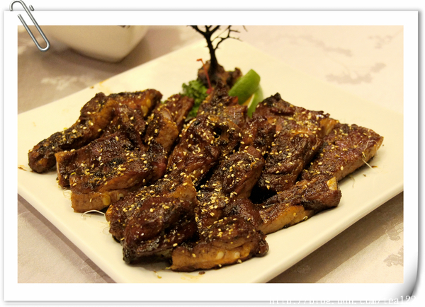 烤豬肋條 青柳的牛肉好吃,但是,如果有人不吃牛肉,吃豬肋條也是很不錯的選擇,這火候拿捏的分毫不差,肉質軟嫰,幾個半百以上的老人,個個吃得眉開眼笑,沒見一個苦著臉猛剔牙。