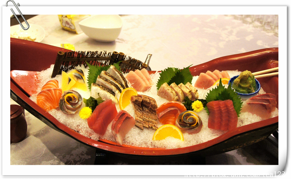 生魚片 大船入囉!佔了三分之一桌面的生魚片上桌了,原來20人份的生魚片,是這般震撼。