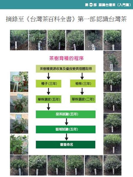 傳統的茶樹雜交育種方法,須經單株選擇、株行試驗、高級試驗、區域試驗等過程,完成全程試驗至少須28~30年之久,吳振鐸博士參考戰後十餘年的選育經驗及許多基本研究,將育種程序創新設計為「生產力與品質鑑定」以及「區域試驗」二個主要過程,並以「苗圃選擇」及「扦插成活率測定」為輔,實施選育工作,如此使雜交育種的育種年限縮短約1/3(15年左右即可育種完成)。 ※茶樹育種的程序: 1、茶樹種資源收集及優良變異個體取得 → 植株(三年)→ 單株選拔(二年)→ 品系試驗(五年)→ 區域試驗(五年)→ 審查命名 2、 茶樹種資源收集及優良變異個體取得 → 種子(三年)→ 單株選拔(五年)→ 品系試驗(五年)→ 區域試驗(五年)→ 審查命名