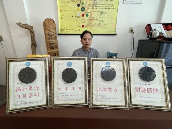 ○ 「財」字~用黃茶類~黃色~中央~用安化茶菁所製黃茶壓製~可用於喬遷、新屋落成
