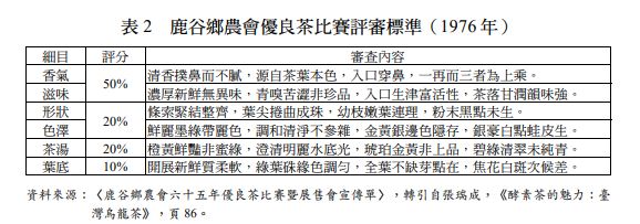 經本訊整理如圖1、2、3,鹿谷鄉農會凍頂烏龍茶1976年與2000年的審評標準不一樣。