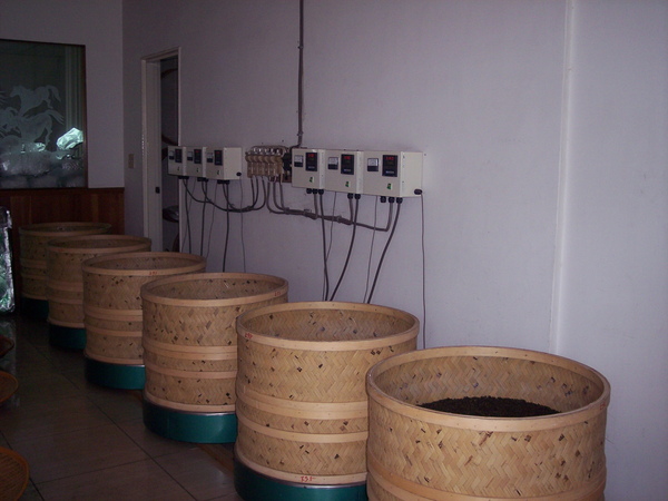老茶去陳味、雜味、倉味等異味五法 (一)低溫烘焙法(電烘焙機、遠紅外線焙籠‧‧‧等) • 操作溫度:70–80°C • 時間:4小時以上,直至異味不見。 • 操作要點:每小時翻動一次,使受熱均勻。 • 原理:低溫長烘使水氣與吸附性揮發物逐漸逸散,減少紙味與潮味。 • 效果特徵:香氣轉清,湯色透亮,陳味消失。 • 注意事項:避免超過85°C,以防茶性變燥。