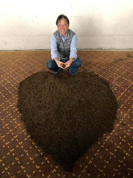 圖:2019帶學生去安化製茶體驗時,將製好紅茶堆成愛心圖樣後拍攝。