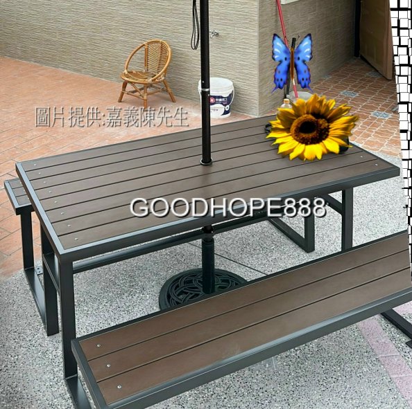 XinChen studio 【客戶分享~(塑木)戶外休閒啤酒桌椅/營區烤肉野餐桌椅/學校團康活動桌椅/民宿農場休閒桌椅/社區頂樓庭園賞景聚餐休閒桌椅陽傘】●嘉義縣鹿草鄉【陳先生】