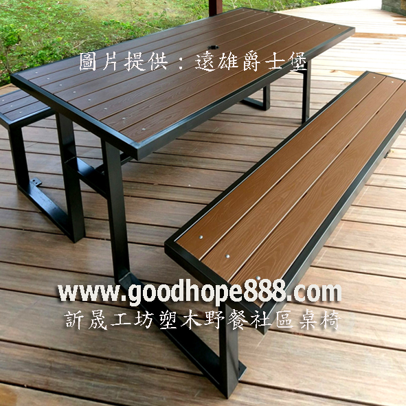 XinChen studio【客戶分享~(塑木)戶外休閒桌椅/營區烤肉野餐桌椅/民宿青旅桌椅/觀光農場休閒桌椅/社區庭園賞景聚餐休閒桌椅】●北市士林區中山北路【遠雄爵士堡】