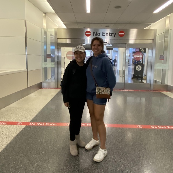 丹佛機場,她母親送行。
