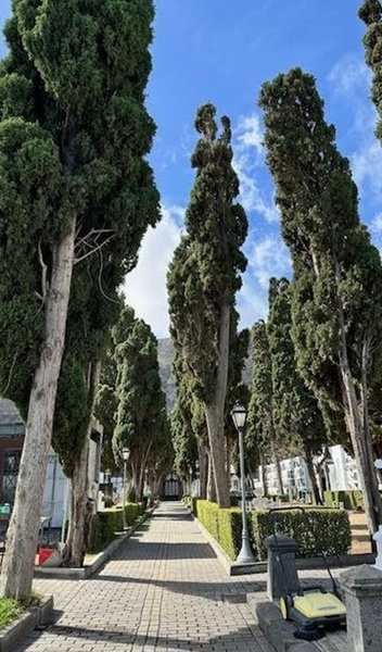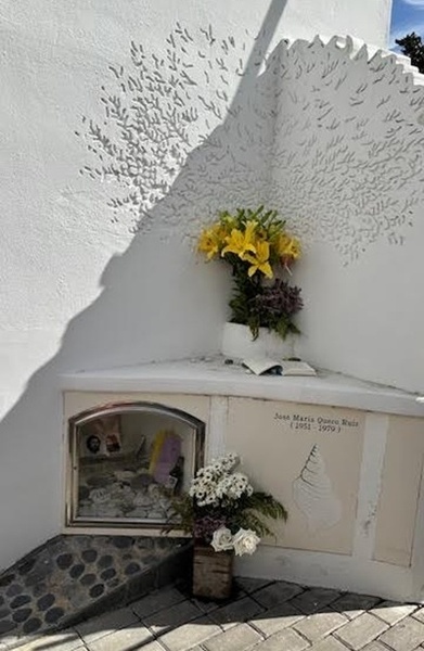去年金秋十月,海外華文女作協於加納利群島的特內里費島舉辦第十八屆雙年會。 加納利群島,三毛稱之為「大西洋裡七顆閃亮的鑽石」。這七座火山島嶼,包括特內里費、大加納利與拉帕爾馬,以及其他小島,靜靜躺在非洲西北海岸外的大西洋上,行政上隸屬於西班牙。1975年,三毛與丈夫荷西從撒哈拉遷居至大加納利島。 會後,我們一行人前往拉帕爾馬島(La Palma),那裡是三毛與荷西在大西洋島鏈上最後的棲息之地。 墓園追思 首先我們來到座落於拉帕爾馬島小山丘上的聖克魯斯墓園 (Cementerio de Santa Cruz de la Palma) ,白色牆垣在陽光下泛著柔和的光。兩排筆直高聳的絲柏象徵永恆的生命,讓這裡顯得靜謐而神聖。有專人接待中國遊客,他發給大家一本《三毛之路》的小冊子,帶著我們穿行於一排排墓石之間,在一處樸素的墓前停了下來。一塊牌子上寫著荷西的西班牙姓名(José María Quero y Ruiz)与生卒年份1951-1979。