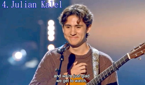 4. Julian Kalel – I Can’t Make You Love Me,他一直表演原創曲,唱他人的歌覺得有些緊張,他的聲音富含感情,聲聲融入歌詞中。*** 進入前20